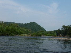 Bref, du vrai « Into the Wild », mais pas tous seuls… C’est lors d’un relevage des filets un matin que je prend conscience de ma chance, a moi… Kostia nous mene le long d’un bras de riviere magnifique. Il faut passer un tronc enorme, serpenter entre des bancs peu profonds, au milieu d’une foret d’arbres enormes, tordus, casses, vigoureux… Tous les arbres representes. Des tilleuls embaument, les Pins se chargent de pignes, cette annees. Des pans entiers de raisin sauvage. Les pentes de la coline qui descendent parfois a pic dans la riviere, laissant la roche a nu. Kostia me montre la source Laoxe, une eau bleue-grisee minerale, qui rajoute a l’ensemble sa purete inviolee… Emotion coup de foudre, pour ce lieu et ce gars, qui m’ouvre les portes d’un monde de tresors, a la hauteur de mes reves.